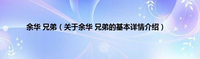 本文关于余华 兄弟的基本详情介绍就讲解完毕,希望对大家有所帮助。