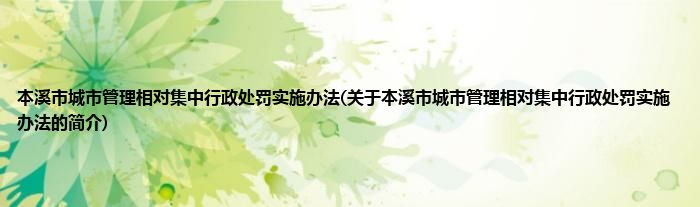 本文关于本溪市城市管理相对集中行政处罚实施办法的简介就讲解完毕,希望对大家有所帮助。