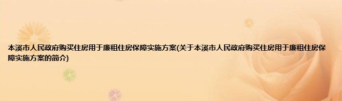 2、现将《本溪市人民政府购买住房用于廉租住房保障实施方案》印发给你们。
