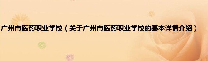 本文关于广州市医药职业学校的基本详情介绍就讲解完毕,希望对大家有所帮助。