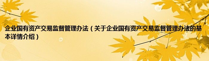 本文关于企业国有资产交易监督管理办法的基本详情介绍就讲解完毕,希望对大家有所帮助。