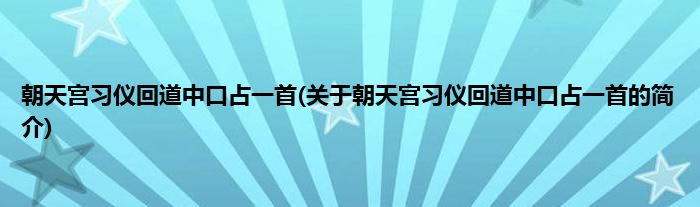 本文关于朝天宫习仪回道中口占一首的简介就讲解完毕,希望对大家有所帮助。
