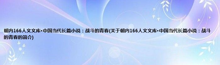 本文关于朝内166人文文库·中国当代长篇小说:战斗的青春的简介就讲解完毕,希望对大家有所帮助。
