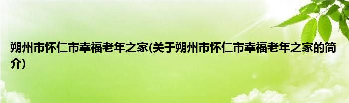 大家好,朔州市怀仁市幸福老年之家,关于朔州市怀仁市幸福老年之家的简介很多人还不知道,现在让我们一起来看看吧!