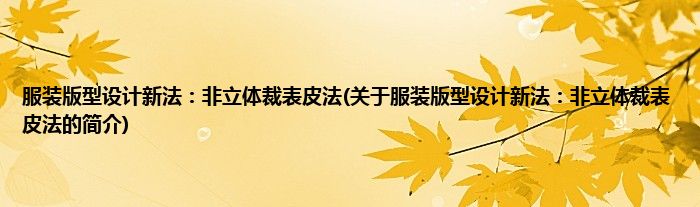 大家好,服装版型设计新法:非立体裁表皮法,关于服装版型设计新法:非立体裁表皮法的简介很多人还不知道,现在让我们一起来看看吧!