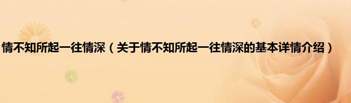 本文关于情不知所起一往情深的基本详情介绍就讲解完毕,希望对大家有所帮助。
