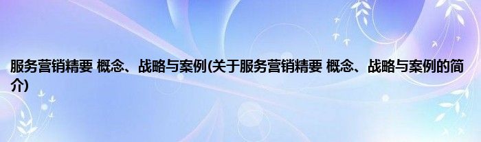 本文关于服务营销精要 概念、战略与案例的简介就讲解完毕,希望对大家有所帮助。