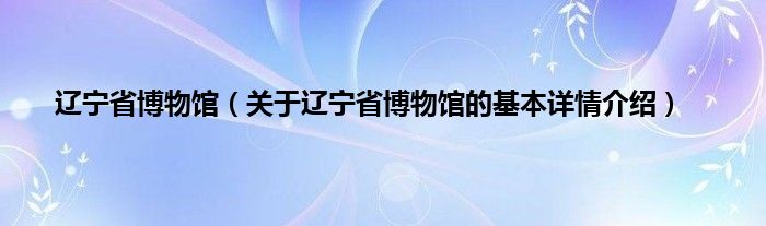 大家好我是小蝌蚪,辽宁省博物馆,关于辽宁省博物馆的基本详情介绍很多人还不知道,那么现在让我们一起来看看吧!