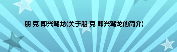 大家好,朋。克。即兴驾龙,关于朋。克。即兴驾龙的简介很多人还不知道,现在让我们一起来看看吧!