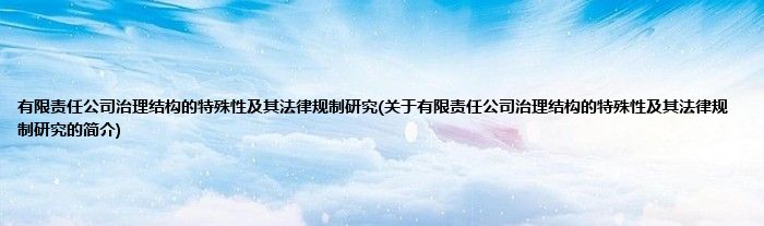 大家好,有限责任公司治理结构的特殊性及其法律规制研究,关于有限责任公司治理结构的特殊性及其法律规制研究的简介很多人还不知道,现在让我们一起来看看吧!