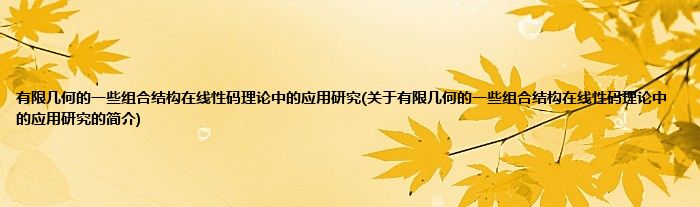 本文关于有限几何的一些组合结构在线性码理论中的应用研究的简介就讲解完毕,希望对大家有所帮助。