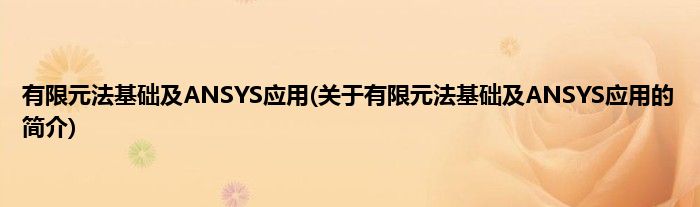 本文关于有限元法基础及ANSYS应用的简介就讲解完毕,希望对大家有所帮助。