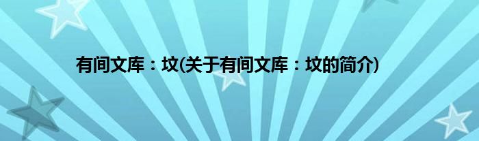 本文关于有间文库:坟的简介就讲解完毕,希望对大家有所帮助。