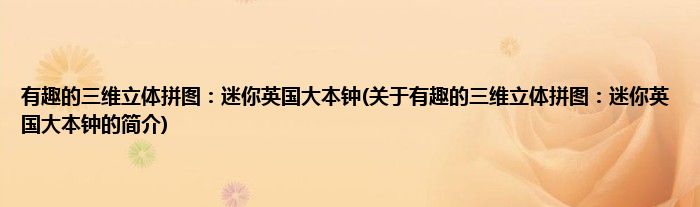 本文关于有趣的三维立体拼图:迷你英国大本钟的简介就讲解完毕,希望对大家有所帮助。