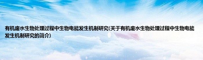 本文关于有机废水生物处理过程中生物电能发生机制研究的简介就讲解完毕,希望对大家有所帮助。