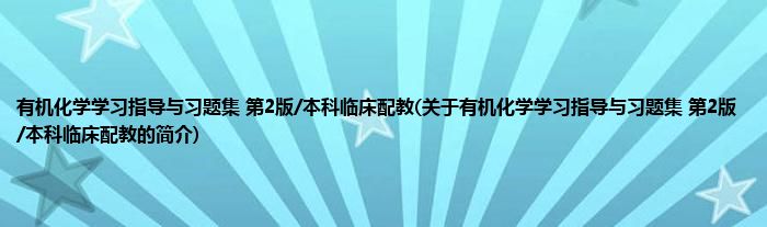 本文关于有机化学学习指导与习题集 第2版/本科临床配教的简介就讲解完毕,希望对大家有所帮助。