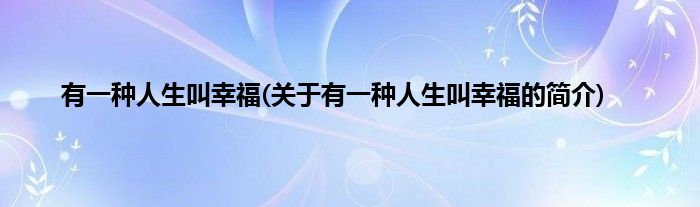 本文关于有一种人生叫幸福的简介就讲解完毕,希望对大家有所帮助。
