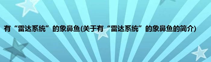 本文关于有“雷达系统”的象鼻鱼的简介就讲解完毕,希望对大家有所帮助。