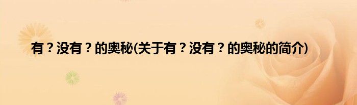 大家好,有?没有?的奥秘,关于有?没有?的奥秘的简介很多人还不知道,现在让我们一起来看看吧!