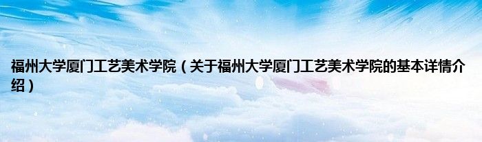 福州大学厦门工艺美术学院(关于福州大学厦门工艺美术学院的基本详情介绍)
