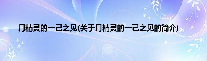 大家好,月精灵的一己之见,关于月精灵的一己之见的简介很多人还不知道,现在让我们一起来看看吧!