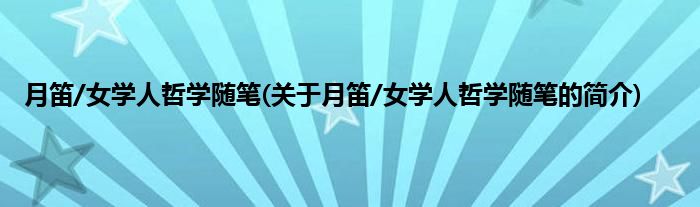 本文关于月笛/女学人哲学随笔的简介就讲解完毕,希望对大家有所帮助。