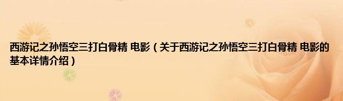 本文关于西游记之孙悟空三打白骨精 电影的基本详情介绍就讲解完毕,希望对大家有所帮助。
