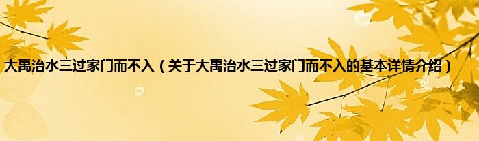 本文关于大禹治水三过家门而不入的基本详情介绍就讲解完毕,希望对大家有所帮助。