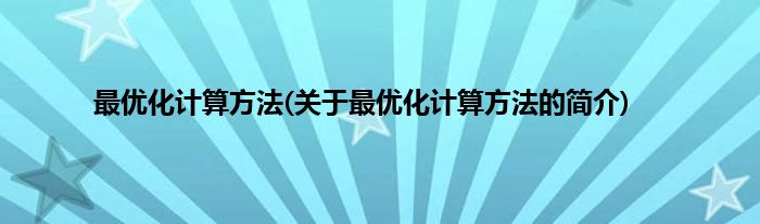 大家好,最优化计算方法,关于最优化计算方法的简介很多人还不知道,现在让我们一起来看看吧!