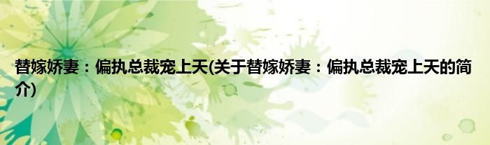 本文关于替嫁娇妻:偏执总裁宠上天的简介就讲解完毕,希望对大家有所帮助。