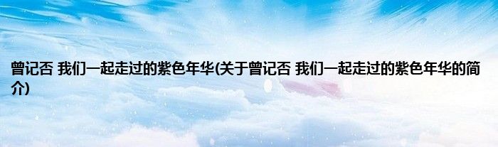 本文关于曾记否,我们一起走过的紫色年华的简介就讲解完毕,希望对大家有所帮助。