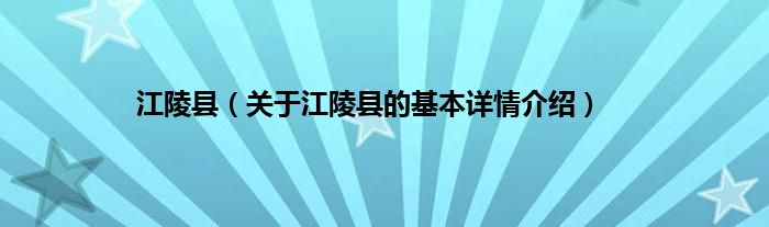 本文关于江陵县的基本详情介绍就讲解完毕,希望对大家有所帮助。