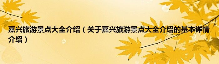 本文关于嘉兴旅游景点大全介绍的基本详情介绍就讲解完毕,希望对大家有所帮助。