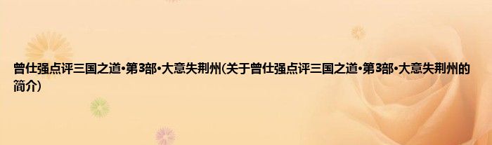 本文关于曾仕强点评三国之道·第3部·大意失荆州的简介就讲解完毕,希望对大家有所帮助。