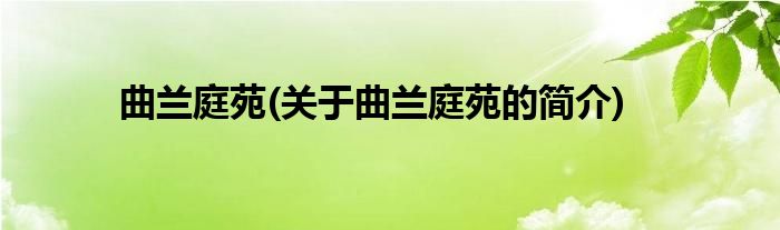 大家好,曲兰庭苑,关于曲兰庭苑的简介很多人还不知道,现在让我们一起来看看吧!