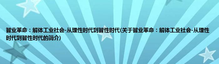 本文关于智业革命:解体工业社会-从理性时代到智性时代的简介就讲解完毕,希望对大家有所帮助。