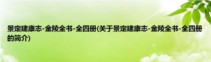 本文关于景定建康志-金陵全书-全四册的简介就讲解完毕,希望对大家有所帮助。