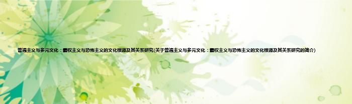 本文关于普遍主义与多元文化:霸权主义与恐怖主义的文化根源及其关系研究的简介就讲解完毕,希望对大家有所帮助。