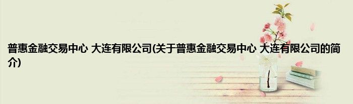 本文关于普惠金融交易中心 大连有限公司的简介就讲解完毕,希望对大家有所帮助。