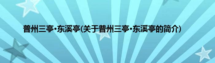 大家好,普州三亭·东溪亭,关于普州三亭·东溪亭的简介很多人还不知道,现在让我们一起来看看吧!