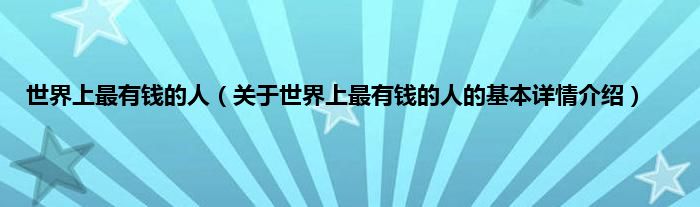 本文关于世界上最有钱的人的基本详情介绍就讲解完毕,希望对大家有所帮助。