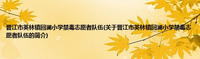 本文关于晋江市英林镇回澜小学禁毒志愿者队伍的简介就讲解完毕,希望对大家有所帮助。