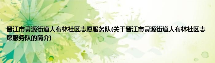 本文关于晋江市灵源街道大布林社区志愿服务队的简介就讲解完毕,希望对大家有所帮助。