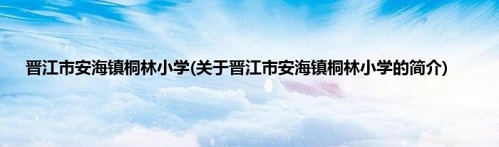 1、 晋江市安海镇桐林小学,创立于公元1908年,地处晋江市安海镇西北隅桐林村。