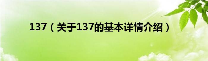 本文关于137的基本详情介绍就讲解完毕,希望对大家有所帮助。