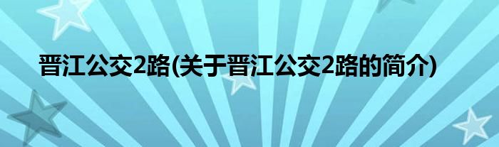 大家好,晋江公交2路,关于晋江公交2路的简介很多人还不知道,现在让我们一起来看看吧!