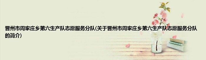本文关于晋州市周家庄乡第六生产队志愿服务分队的简介就讲解完毕,希望对大家有所帮助。