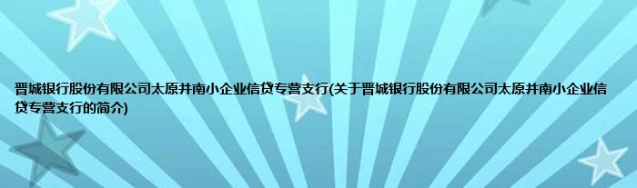 本文关于晋城银行股份有限公司太原并南小企业信贷专营支行的简介就讲解完毕,希望对大家有所帮助。