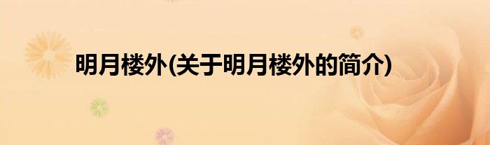 大家好,明月楼外,关于明月楼外的简介很多人还不知道,现在让我们一起来看看吧!