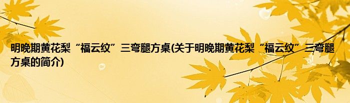 本文关于明晚期黄花梨“福云纹”三弯腿方桌的简介就讲解完毕,希望对大家有所帮助。
